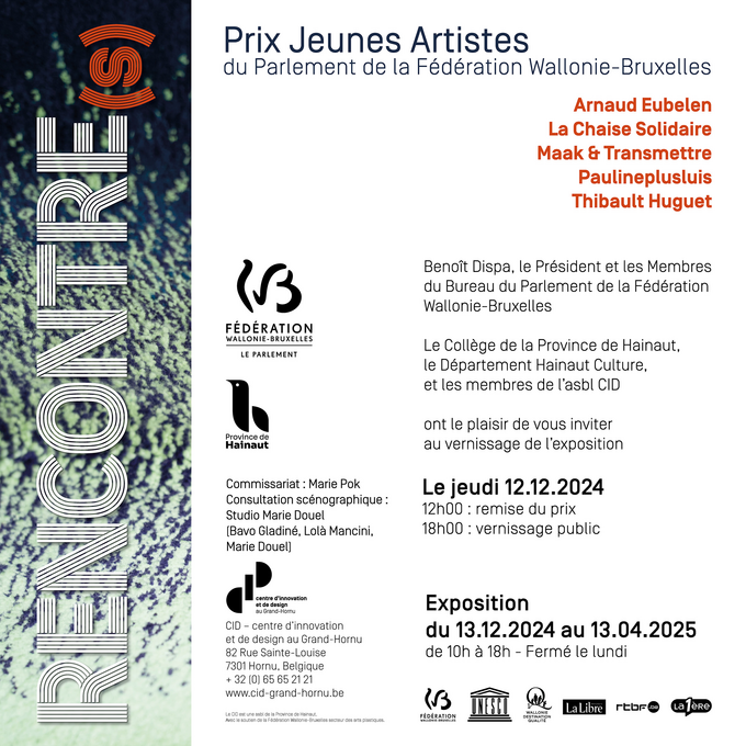 This THURSDAY 12 December, the Parliament of the Wallonia-Brussels Federation will be awarding its Prix Jeunes Artistes for design to an artist (or collective) under the age of 40 in the world of design.