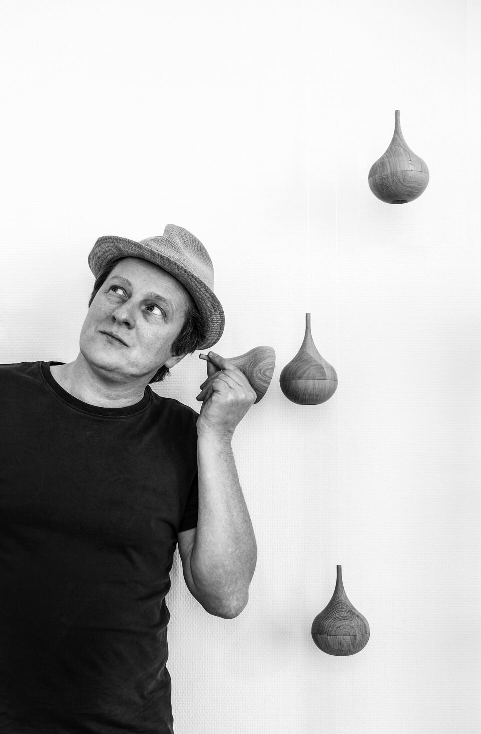 Dans l'idée d'essayer de mélanger les univers et les disciplines, la musique avec le design, l'écriture avec la performance, cet objet est dédié à Erik Satie, se rapprochant ainsi de son humeur fibreuse. Une typologie d'objet insolite tirée de sa pièce en forme de poire, pied de nez à celle-ci. Caricature de la figure de la poire en lévitation, en suspens, défiant la loi universelle de la gravitation et la pomme de Newton.