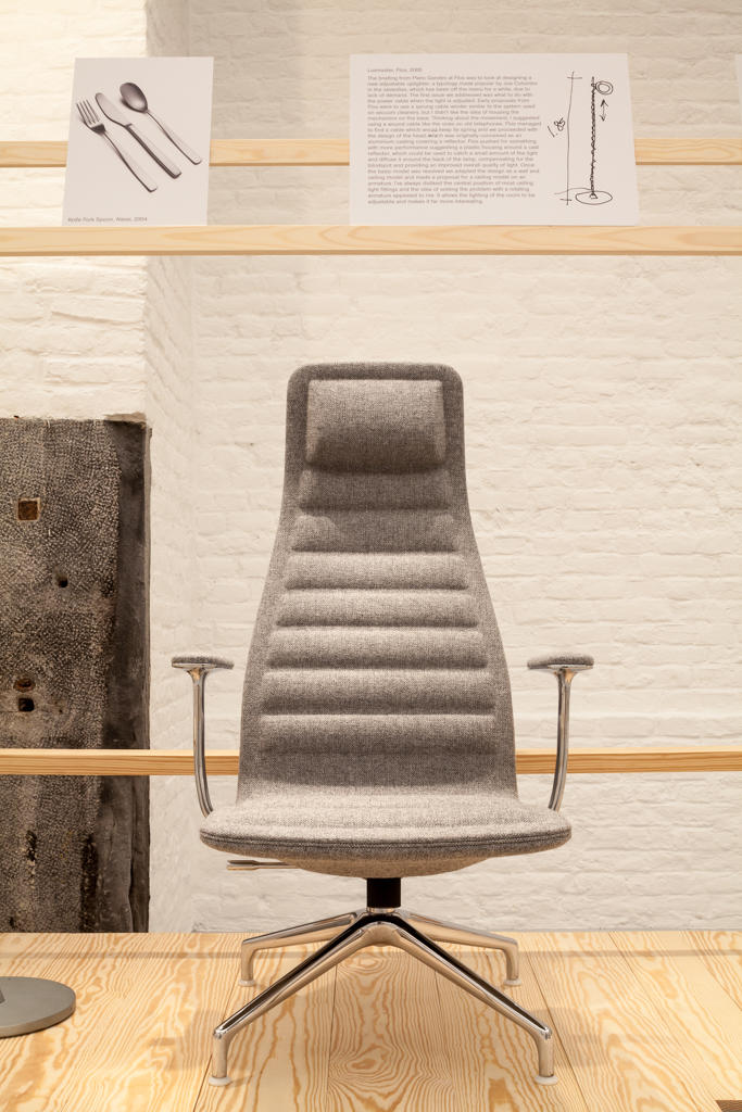 "La famille de chaises Lotus a demandé plus de temps et un plus grand investissement que les projets habituels pour Cappellini, ainsi qu’une quantité considérable de prototypes. Les ventes de Cappelllini se déplacaient du marché domestique vers celui des espaces publics, tels les hôtels, les bureaux, les salons de compagnies aériennes, et Giulio Cappellini m’a demandé un jour de réfléchir à un projet pour des fauteuils de bureau haut de gamme. Adaptant la technologie de coussins capitonnés que nous avions développée pour les chaises Low Pad et Hi Pad en 1999, j’ai dessiné un modèle pour coques en contre-plaqué dérivé en trois types de fauteuils de bureau avec différentes hauteurs de dossier et un fauteuil de relaxation qui furent capitonnés avec les coussins. Le piètement fut le plus grand investissement. Mais comme ce piétement est utilisé sur les quatre modèles et diverses tables basses, le volume de production justifiait le coût du moule." Jasper Morrison.