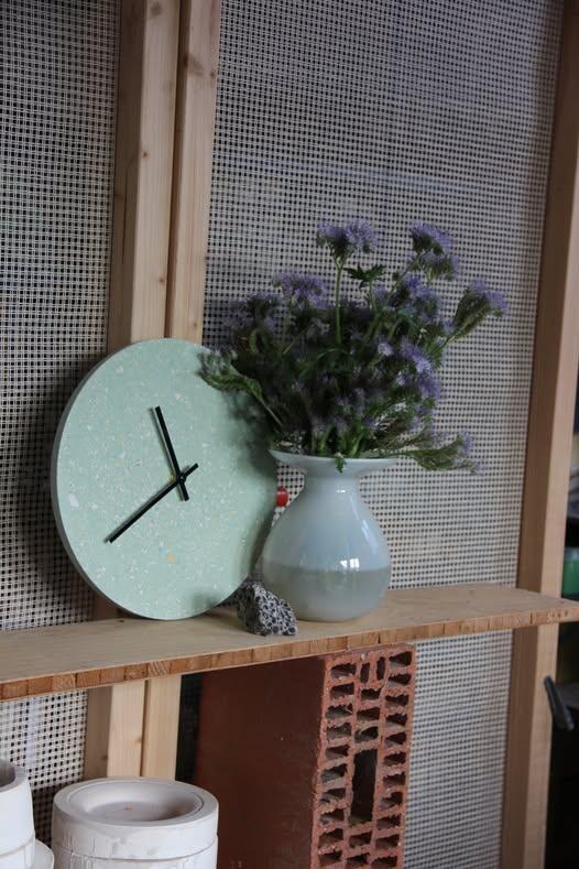 Vous commencerez par préparer le plâtre. Lyse dispose d'un large choix des couleurs de plâtres recyclés et d'incrustations ! Après le coulage dans le moule, il faudra un peu patienter jusqu'à solidification.