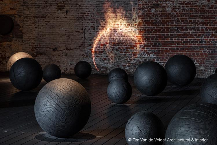 Met de verbranding van de houten bol wil Kaspar Hamacher aantonen dat elke handeling van de mens belangrijk en relevant is, om zijn bronnen niet te verspillen.