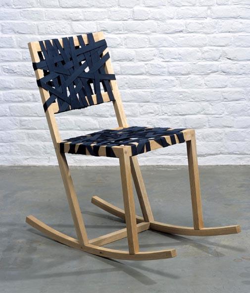 Chaise à bascule en bois et sangles créée par Richard Hutten et inspirée d'un modèle de l'architecte hollandais Berlage.