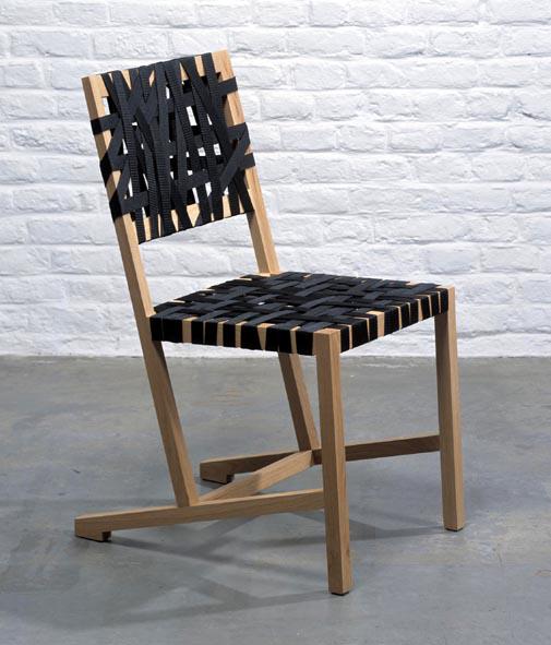 Chaise en bois assise tissée de sangles, créée par Richard Hutten, inspiré de la vaste collection de meubles de l'architecte Berlage.