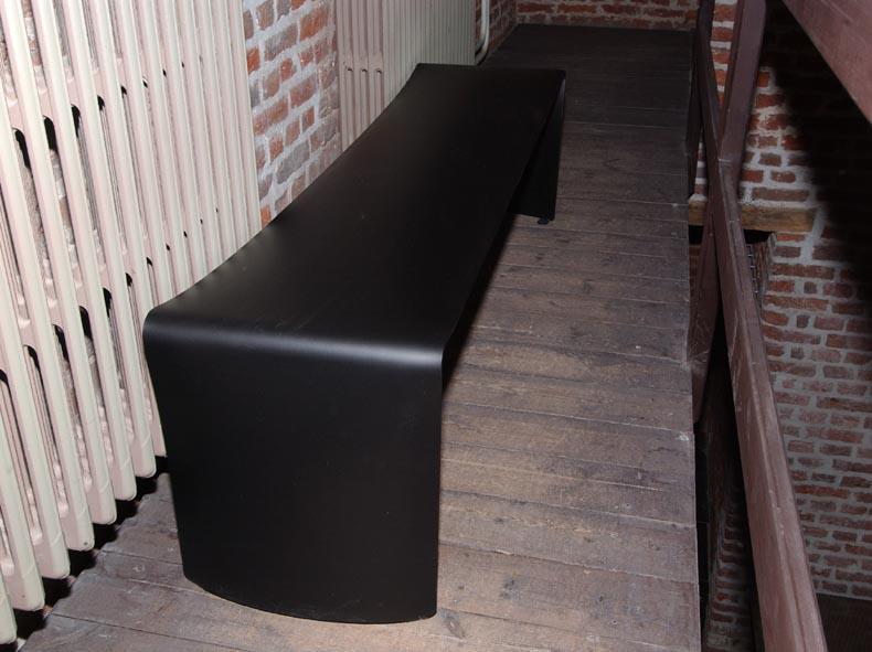 Le Banc est né d’une intuition en 1999. Le jeune designer belge Xavier Lust imagine alors un procédé économique de production qui permet de former des surfaces planes en 3D sans utiliser de moule. Le Banc, édité par MDF Italia, est constitué que d’une seule feuille d’aluminium de 6mm d’épaisseur courbée en trois dimensions. Prévu pour une utilisation dans l’espace intérieur et aussi extérieur, les Bancs de Xavier Lust sont installés dans le quartier des musées à Bruxelles, tout en haut du Mont des Arts.