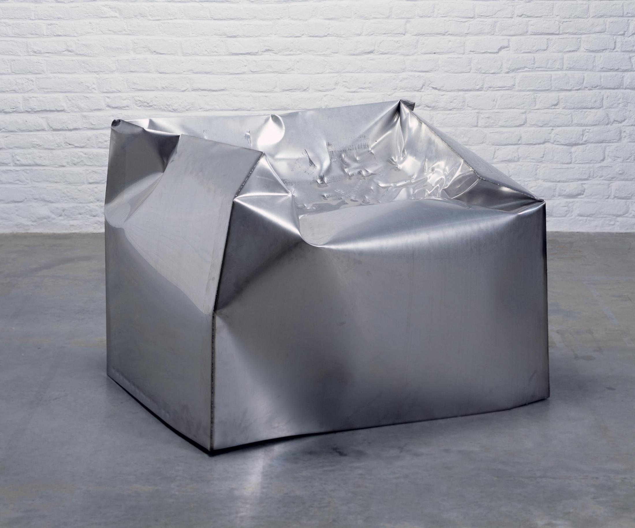 Ce cube d'acier est livré avec un marteau de forgeron afin que le client puisse personnaliser sa forme lui-même. Il peut le battre, l’emboutir et le marteler jusqu'à ce qu'il obtienne la forme désirée : un propre morceau parfait d'art fonctionnel. Cette chaise est une co-production entre le designer et le client, combiné au mouvement artistique et artisanal du “Do It Yourself ».