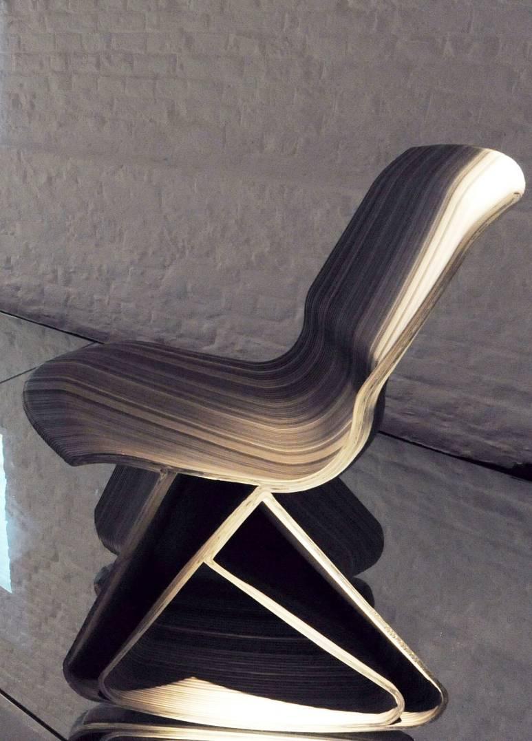 L'ingénieux concept de chaise Endless du designer néerlandais Dirk Vander Kooij se base sur un procédé de fabrication original. Une veille machine industrielle vétuste, reprogrammée, crée d'un seul trait une chaise composée de plastique recyclé.