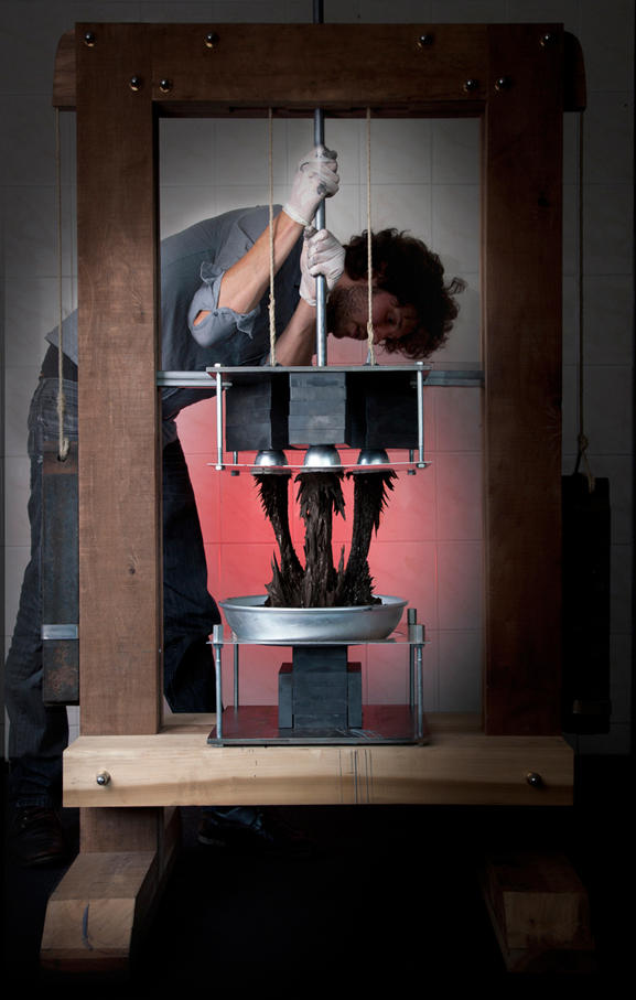 Fraîchement diplômé de la Gerrit Rietveld Academie d’Amsterdam, le designer néerlandais Jólan van der Wiel crée d’étranges tabourets aux formes aléatoires en utilisant les lois naturelles de la gravité. Utilisant la magnetmachine, un outil de sa conception pour son projet de fin d’études, il positionne des champs magnétiques, les opposant l’un à l’autre, afin d’étirer et tordre un mélange plastique additionné de limaille de fer pour obtenir des tabourets aux formes fantomatiques. Grâce à cette technique peu orthodoxe, en 20 minutes à peine, une silhouette de tabouret aux formes pointues et organiques semble croître de manière naturelle.