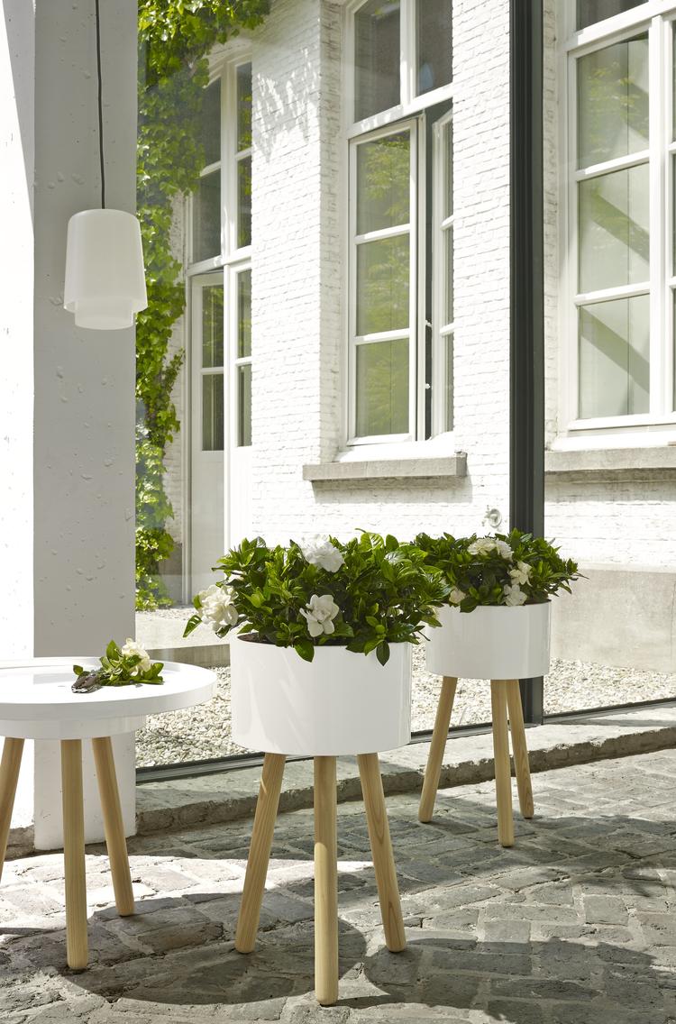Créé par Jean-François D'Or pour Ligne Roset, ce support en bois fait partie d'un objet modulaire d'extérieur, Jean-Baptiste, pouvant servir de tabouret, support pour plante et plateau de service. Cet ensemble, qui s'adapte à n'importe quel lieu y compris de petits balcons citadins, doit son nom à Jean-Baptiste de la Quintinie, jardinier du potager de Louis XIV.