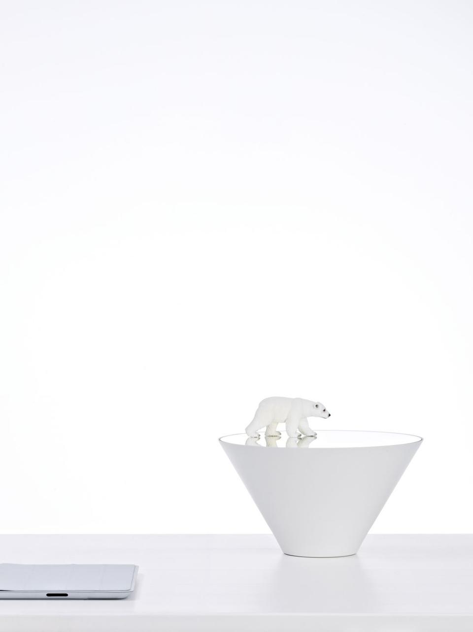 De forme conique, Edvard, le miroir créé par Jean-François D'Or pour Reflect +, se démarque par un caractère étonnamment polyvalent. Une forme conique, une base et un sommet rond… Edvard ressemble en quelque sorte à un klaxon. Surtout s'il est fixé au mur. On pourrait le comparer à un mégaphone, comme si le mur 'crie' pour attirer l'attention. Voilà qui explique le nom Edvard, en référence au peintre norvégien Edvard Munch, à qui l'on doit le célèbre tableau ‘Le Cri’.